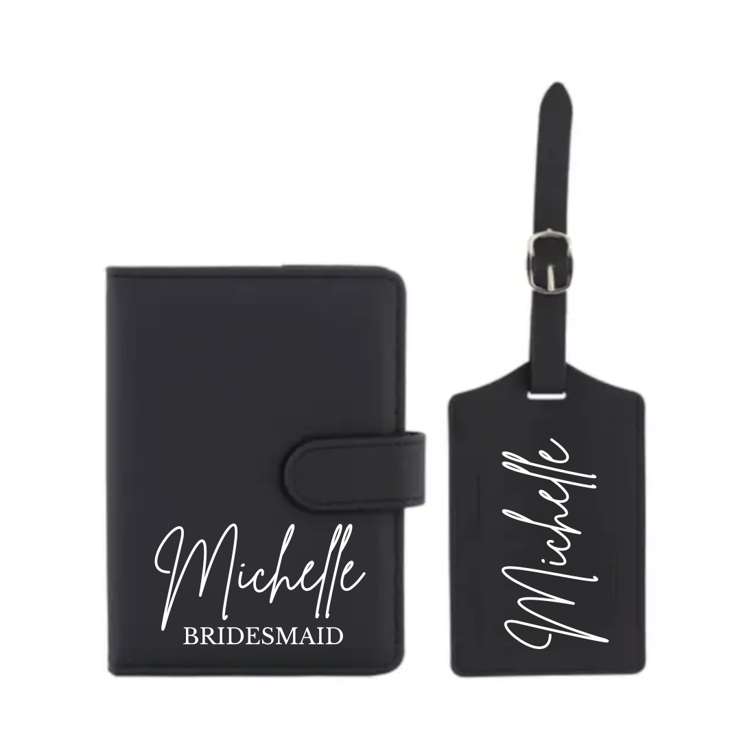 Personalised Black Passport Holder & Luggage Tag Set